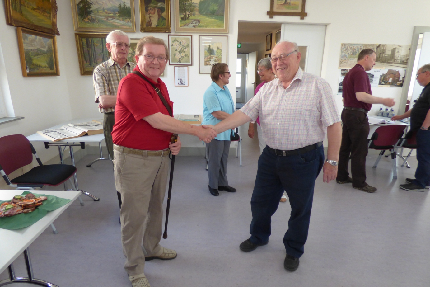 Ins neue „Haus der Betzdorfer Geschichte“ hatte der Heimatverein des Kreises Altenkirchen im Rahmen seiner Vortragsreihe geladen. So fand die erste Veranstaltung an dieser Örtlichkeit noch vor der offiziellen Eröffnung statt. Der „Betzdorfer Geschichte e.V.“ war mit den Renovierungsarbeiten gerade rechtzeitig fertig geworden und so konnten die Gäste noch die frische Wandfarbe und die neue Bodenversiegelung riechen. Sogar die Sitzmöbel waren erst wenige Tage zuvor eingetroffen und einladend gestellt worden. Ansonsten sah die Einrichtung noch nicht nach einem Museum aus, eher kahl und leer. Doch dies wird sich in den kommenden Monaten ändern, wenn der Verein seine Läger in die Bismarckstraße verlegt, die Exponate sortiert, archiviert und hier einlagert. Das allerdings wird noch einige Zeit in Anspruch nehmen. Immerhin konnten im Eingangsflur bereits alte Ortsansichten betrachtet werden, wovon schon rege Gebrauch gemacht wurde. Auch die im Saal platzierte Sammlung mit Zeichnungen und Gemälden von Franz-Josef Magnus fand großes Interesse. Unter den Gästen des Abends fanden sich viele, die das Haus noch als „Ev. Vereinshaus“ besucht hatten. Die einhellige Meinung war, dass man das Beste aus der alten Versammlungsstätte gemacht hat. Man sei froh, dass der BGV der neue Nutzer ist, so konnte man hören. Dies alles kam auch in den Begrüßungsworten vom Vorsitzenden Heinz Stock, sowie in der Einleitung von Konrad Schwan (Kreisheimatverein) zur Sprache. Beide gingen auf die jüngste Vergangenheit des Hauses ein und führten zum Vortrag des BGV-Geschäftsführers hin. Gerd Bäumer teilte seinen Vortrag in drei Teile: Zunächst stellte er den Verein vor, danach beleuchtete er die Geschichte des Ev. Vereinshauses und schließlich erläuterte er Fotos vom jetzt abgeschlossenen Umbau des zukünftigen Museums. Im ersten Teil konnten die interessierten Zuhörer erfahren, welche Ziele sich der BGV auf die Fahnen geschrieben hat, was schon erreicht wurde und welche Aufgaben noch vor den Mitgliedern stehen. Die Historie der örtlichen Ev. Gemeinschaft, des CVJM und letztlich des Ev. Vereinshauses standen im Mittelpunkt des zweiten Teils. Gespickt mit alten Fotos wurden durch die Projektion auf die weiße Wand bei manchem Anwesenden wehmütige Erinnerungen wach. Der dritte Teil des Vortrages zeigte abschließend die beeindruckende Entwicklung des Gebäudes vom Zeitpunkt der Übernahme durch den Verein, über die Bauarbeiten bis hin zum jetzigen Zustand. So war letztlich für jeden der Gäste etwas geboten worden und man war sich einig, sehr viel Erfreuliches mit nach Hause zu nehmen. Die Schlussworte von Konrad Schwan und von Heinz Stock waren erfüllt vom Dank an den Vortragenden und von den besten Wünschen für ein erfolgreiches Gelingen der Vereinsziele. (Fotos: Hans Schmidt) |